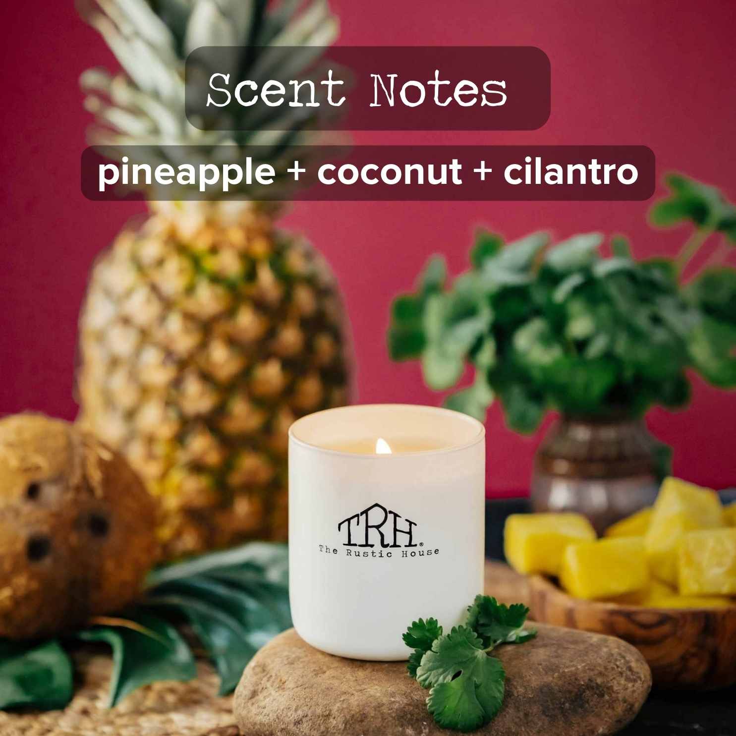 Close your eyes and smell the pineapples for an ultimate getaway to a tropical island. This fruit-forward scent is juicy and vibrant with the sweetness of island ripe pineapples and subtle cilantro. If you are craving that fun in the sun vibe this scent will take you there.